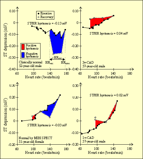 positive hysteresis in ST depression against HR (i.e., counterclockwise