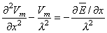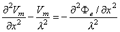 One can recognize in this equation that the second derivative of the applied potential field along the fiber is the forcing function (in fact, it has been called the "activating function"), whereas the dependent variable, Vm, is the membrane response to the stimulation. Using Equation B.23, one can write Equation B.24 as