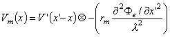 where V'(x) = deviation of the membrane voltage from the resting voltage.
